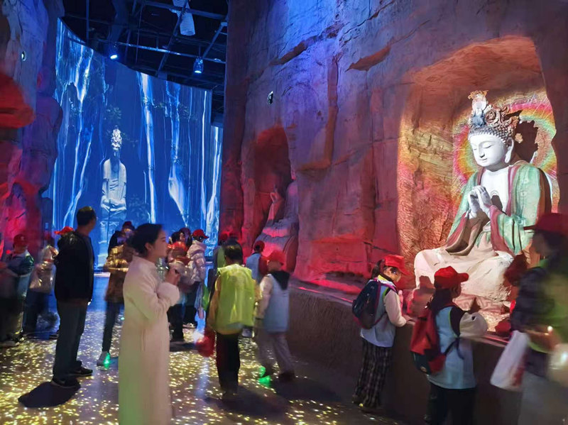 中小学生在石窟数字展示中心开展研学活动。唐险峰摄