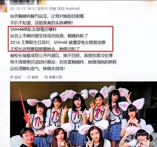 前丝芭旗下女团成员曾艳芬的一篇长文,成为了引爆公论的要道。她不仅声援鞠婧祎,更径直捅破了行业内一层心照不宣的“窗户纸”:为了拉拢投资、谋求上市,公司长期安排旗下年青女艺东谈主参与多样大意饭局,席间需要隐忍投资方或配合雇主的“执手执脚”和低俗打趣 。停止?代价就是被公司雪藏,资源尽失。她我方就是因无法隐忍,最终花了60万元“赎身费”才得以脱身。